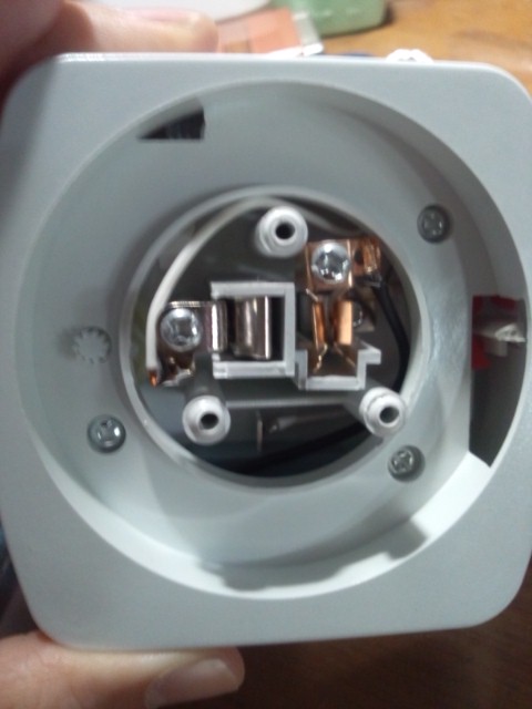 しかし、正面のコンセント穴の周りがシールなのでそれを剥がすと、ネジが三つ出てきます。