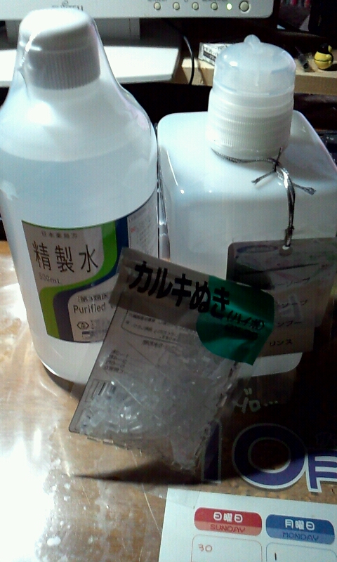 2mlのハイポ水溶液で1Lの水道水のカルキを中和する能力を持つハイポ水溶液を作る。